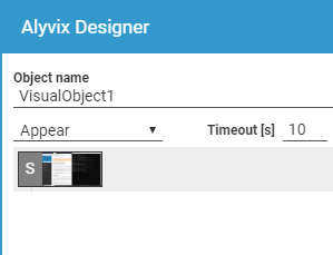 Image: Given a region of interest on the screen, Alyvix will look for the defined selection in that RoI. For instance, it may be a particular system or application icon, a shape like a circle regardless of its color, or a box that changes from one color to another. The “photograph” icon above represents an Image object.
