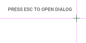 When a screen grab begins, the current screen is captured (it will turn white for a second while the capture process is underway). It then displays the screen capture at full resolution with purple crosshairs that track the mouse, and a semi-transparent reminder PRESS ESC TO OPEN DIALOG is overlaid at the top left as shown here: