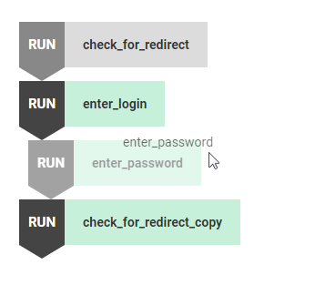 Two adjacent scripting nodes will be executed in sequence, with the lower node inheriting the state of the GUI that was modified by the node preceding it. So for instance in the script above, the RUNenter_login node would be executed before RUNcheck_login_success. The other types of scripting nodes are explained in the following section.